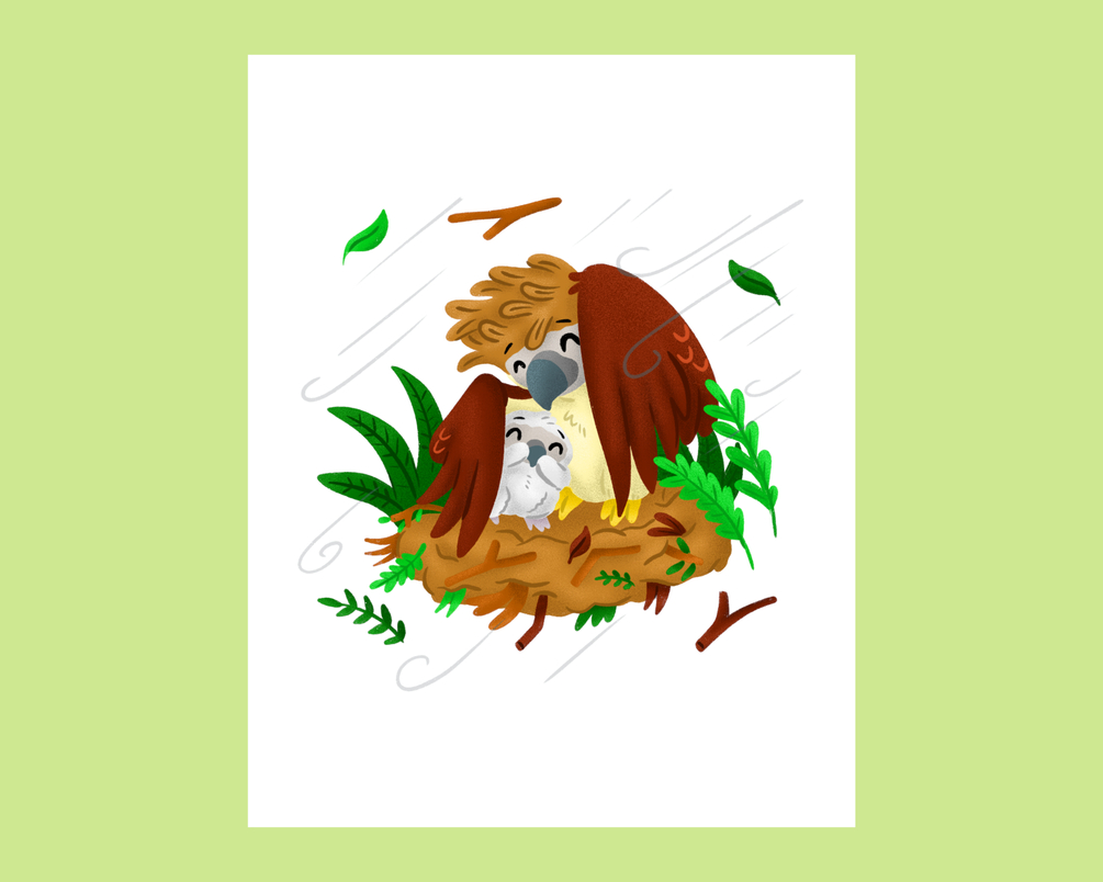 Philippine Eagle and chick in nest during typhoon