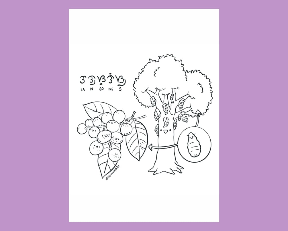 Lanzones fruit, tree, and scale insect with badlit bisaya coloring page