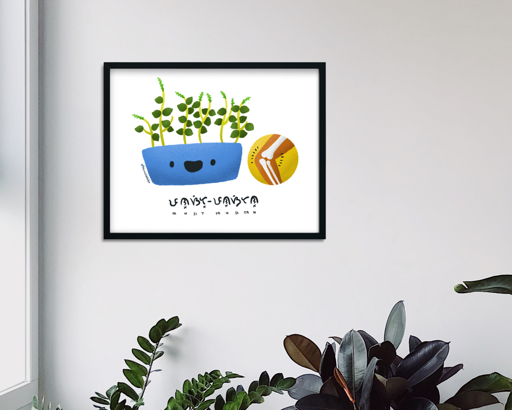 Pancit-pancitan (Peperomia pellucida) with Baybayin name printable wall art and decor